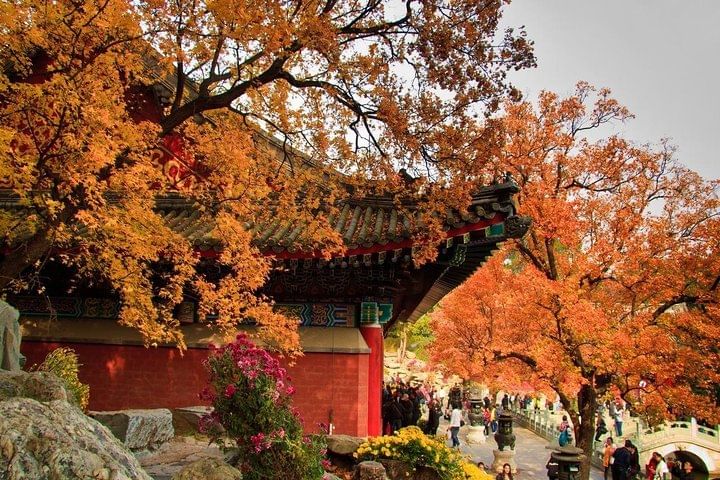 Xiangshan is famous for its red leaves. Every autumn, the leaves on the mountain are as red as flames. These yellow lime trees were first planted in the Qing Dynasty. Mid-October to early November is the best time to see the red leaves, which usually last for about a month.